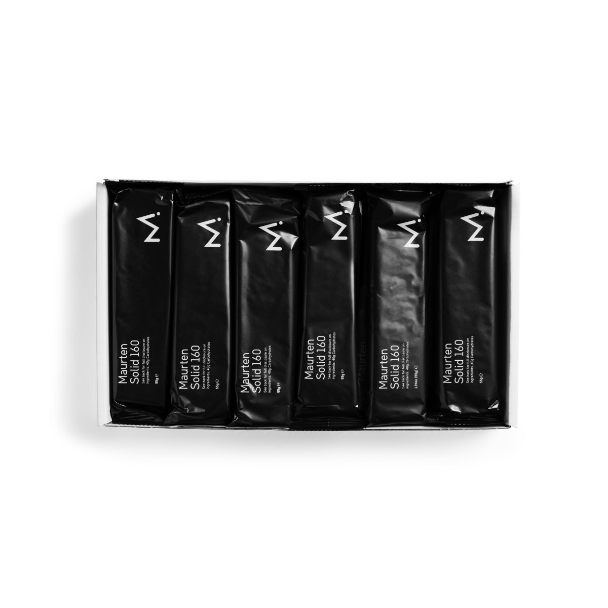 Solid 160 contient 40 grammes de glucides, soit la même quantité que Gel 160 et Drink Mix 160. Il s'agit du système de ravitaillement modulaire de Maurten, qui permet aux athlètes de calculer plus facilement leur consommation d'hydrates de carbone pendant l'entraînement et la course.
