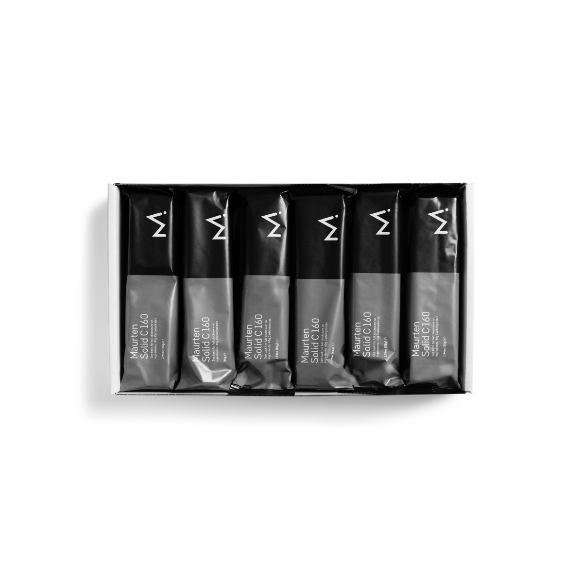 Solid 160 contient 40 grammes de glucides, soit la même quantité que Gel 160 et Drink Mix 160. Il s'agit du système de ravitaillement modulaire de Maurten, qui permet aux athlètes de calculer plus facilement leur consommation d'hydrates de carbone pendant l'entraînement et la course.
