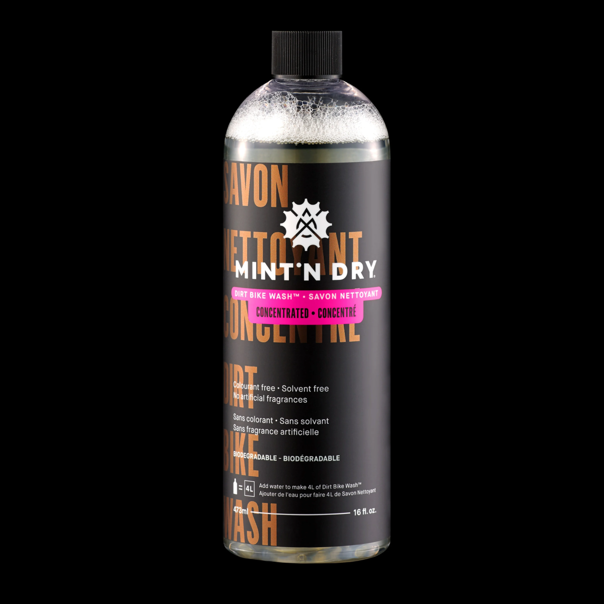 Cette formule concentrée de notre produit Dirt Bike Wash, conçue pour les conditions extrêmes, vous permet de faire plus avec moins. Réutilisez votre bouteille ordinaire de 1 litre et votre pulvérisateur de mousse et obtenez un total de 4 litres de Dirt Bike Wash ordinaire en ajoutant simplement de l'eau. Sans solvant agressif, il est sans danger pour tous les types de matériaux, y compris l'aluminium, le carbone, le titane, l'acier, le plastique et le caoutchouc. Rapide à utiliser et facile à rincer, il ne laisse pas de traces. Contient un additif anticorrosion pour réduire le risque de rouille.