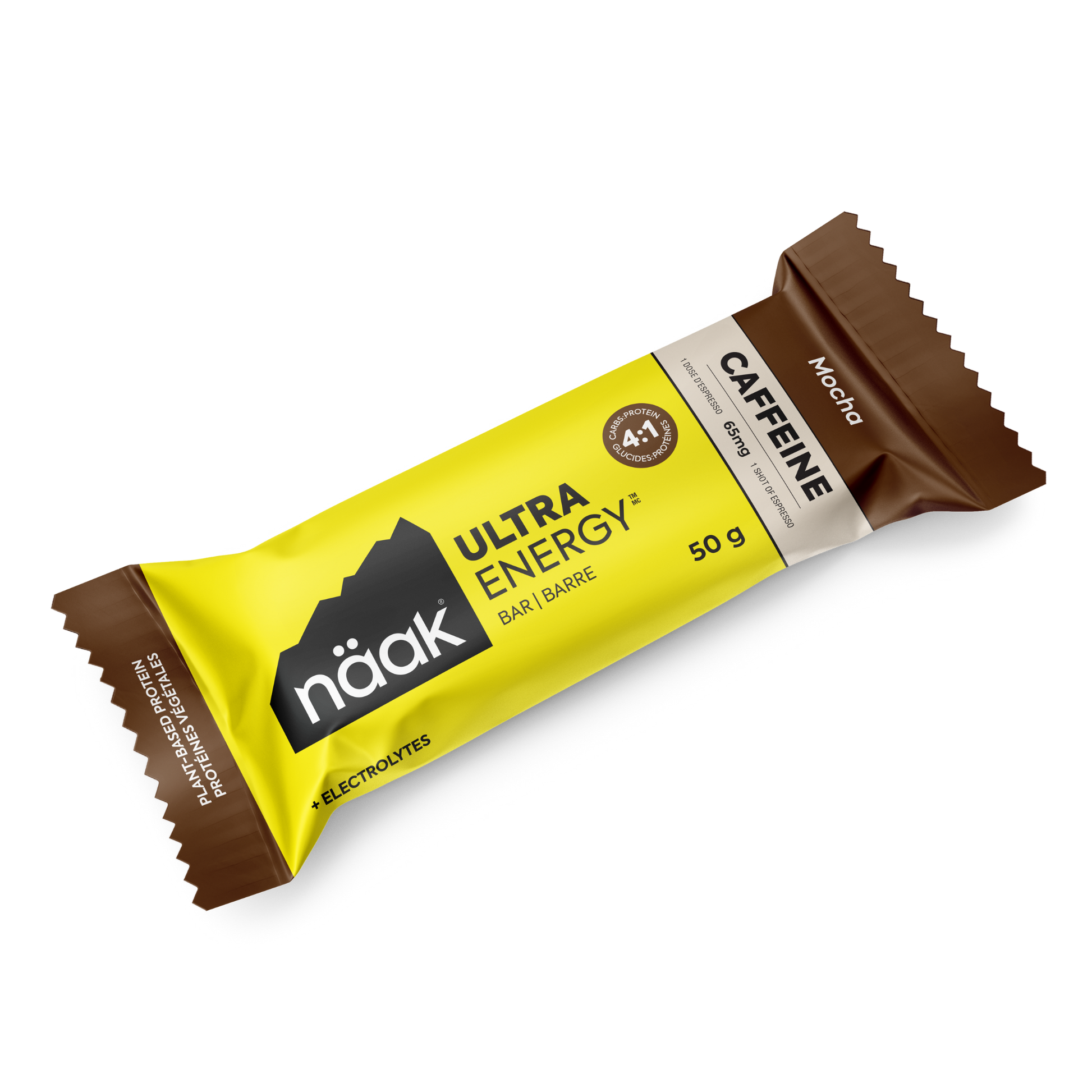 Avec 65mg de caféine, un rapport glucide/protéine de 4:1 et 480mg d'électrolytes, les barres caféinées Näak augmentent la concentration et l'endurance, tout en réduisant la fatigue musculaire.