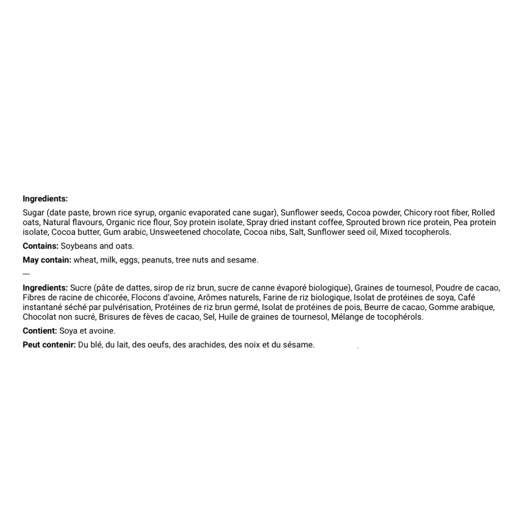 Le mariage du chocolat noir et des grains de café torréfiés donne à la barre Mocha une saveur riche et intense. Offrez-vous un délicieux boost énergétique pendant votre entraînement, ou remplacez votre café du matin par cette collation caféinée.
