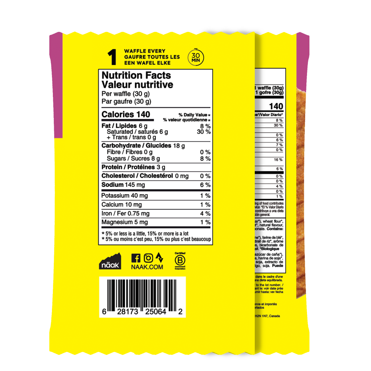Les gaufres sont fabriquées sans huiles de palme pour minimiser notre impact sur l'environnement. Les plantations de palmiers à huile à grande échelle jouent un rôle dévastateur dans les forêts tropicales, impactant la vie des plantes et des animaux qui occupent la zone. En choisissant de retirer cet ingrédient de notre produit, nous pouvons poursuivre notre mission qui consiste à fournir les produits de nutrition sportive les plus écologiques.